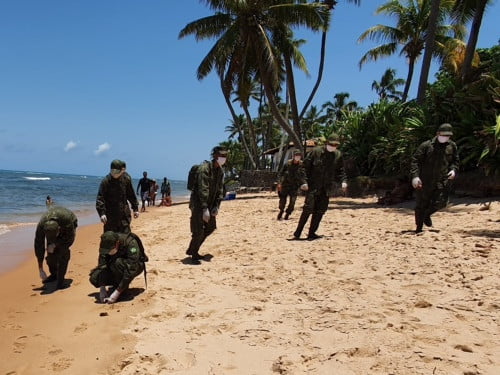 Os militares inspecionaram a faixa de areia e constataram a limpeza da praia, não sendo identificados resíduos oleosos. A ação faz parte das medidas que objetivam revisitar as áreas litorâneas e oceânicas que foram atingidas pelo criminoso derramamento de óleo, ocorrido no ano passado. Estão programadas novas inspeções a serem realizadas em coordenação com órgãos ambientais da região.