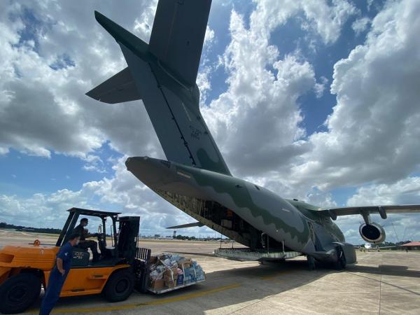 Somente nesta segunda-feira (9), o KC-390 Millennium FAB 2854, operado pelo Primeiro Grupo de Transporte de Tropa (1º GTT) – Esquadrão Zeus, e o C-130 Hércules FAB 2477, operado pelo Primeiro Esquadrão do Primeiro Grupo de Transporte (1°/1° GT) – Esquadrão Gordo, decolaram, da Ala 9, em Belém (PA), para Macapá (AP), com cerca de 15,5 toneladas de alimentos não perecíveis e água potável.