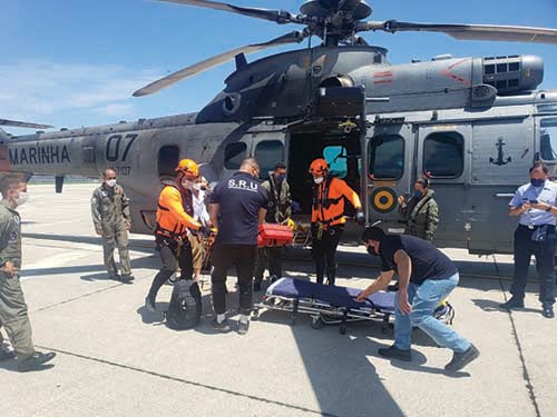 Assim, na manhã do dia 17, a 150 milhas náuticas (278 quilômetros) a sudeste do Rio de Janeiro, uma aeronave UH-15, pertencente ao 2º Esquadrão de Helicópteros de Emprego Geral, sediado em São Pedro da Aldeia (RJ), realizou o resgate e transporte do ferido para o aeroporto Santos Dumont.