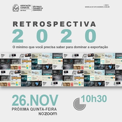 A São Paulo Chamber of Commerce realizará nesta quinta-feira (26), às 10h30, sua 19ª live. O tema é “Retrospectiva 2020 – O Mínimo Que Você Precisa Saber Para Dominar a Exportação”.