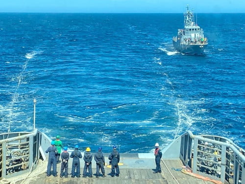 O Navio de Apoio Oceânico (NApOc) “Purus” e o Navio-Patrulha (NPa) “Gurupá”, subordinados ao Comando do Grupamento de Patrulha Naval do Sudeste (ComGptPatNavSE), realizaram, em 26 de novembro, uma Transferência de Óleo no Mar (TOM) – a primeira do NApOc “Purus” para um NPa, após bem-sucedida tarefa com a Corveta “Barroso”.