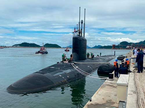 Após a cerimônia em celebração ao Dia do Marinheiro, realizada na sexta-feira (11), o Presidente da República, Jair Bolsonaro, Ministros de Estado e demais autoridades conheceram, por convite da Marinha dos EUA, o USS “Vermont”, atracado desde 10 de dezembro, em visita oficial ao Brasil. O Presidente foi recebido pelo Embaixador dos EUA no Brasil, Todd Chapman, e pelo Comandante da Força de Submarinos dos EUA, Vice-Almirante Daryl Caudle.