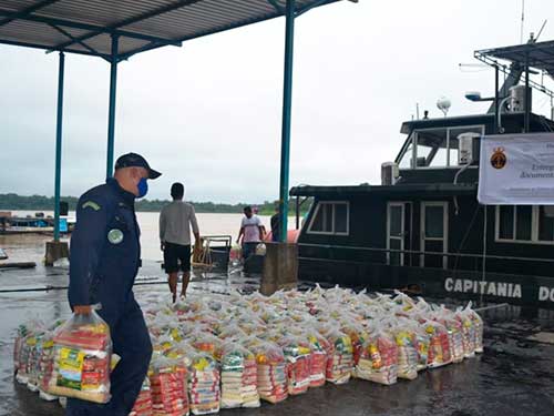 A ação é realizada pela Universidade Federal do Amazonas em parceria com o Núcleo de Estudos Socioambientais da Amazônia e faz parte da campanha “Amazônia contra a Covid-19”, que apoia mais de dez etnias em todo o estado do Amazonas com a doação de cestas básicas e kits de higiene.