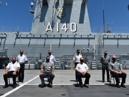 A delegação foi recebida a bordo do navio pelo Comandante da 1ª Divisão da Esquadra, Contra-Almirante Marcio Tadeu Francisco das Neves, que representou o Comandante em Chefe da Esquadra; e pelo Comandante da Força de Submarinos, Contra-Almirante Thadeu Marcos Orosco Coelho Lobo, que conduziu a comitiva durante o período em que os Oficiais visitaram diversas organizações militares da Marinha. Na ocasião, o Comandante do navio apresentou as boas-vindas e percorreu as principais instalações do NAM “Atlântico”. A comitiva conheceu as capacidades do navio relacionadas às operações aéreas, operações anfíbias e o emprego em apoio a operações humanitárias e estreitou os laços profissionais que unem as duas Marinhas do Atlântico Sul. As informações são da Marinha do Brasil.