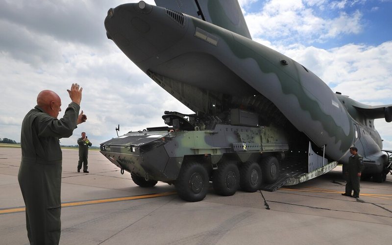 Um KC-390 Millennium da Força Aérea Brasileira (FAB) fez uma demonstração para autoridades na República Tcheca na última segunda-feira (6). A aeronave de produção da Embraer transportou um blindado Pandur II, de fabricação austríaca.