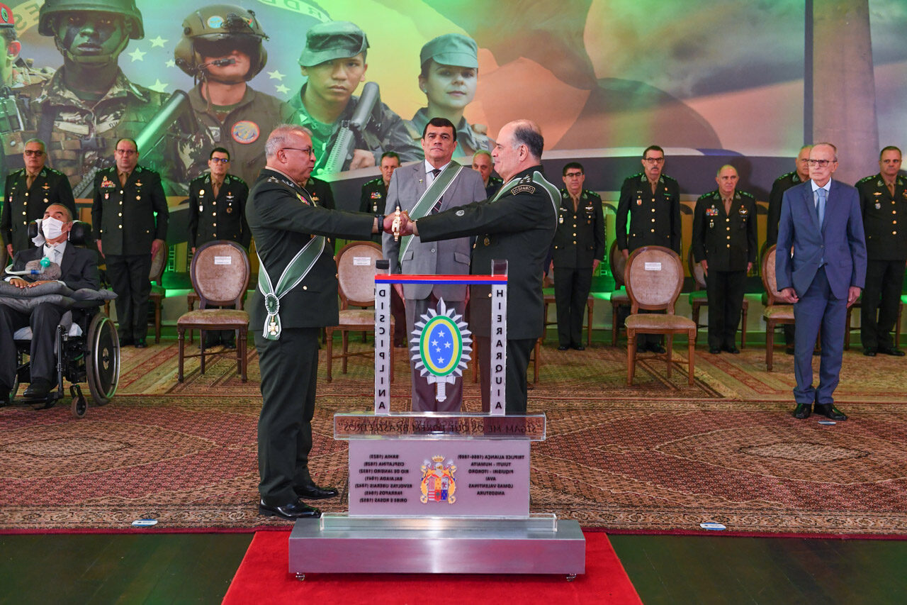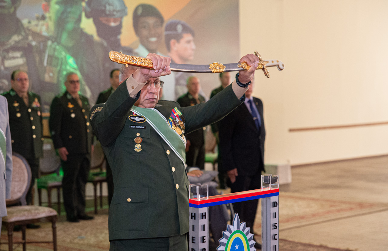 Como parte da tradição da solenidade, o novo comandante recebeu das mãos do comandante sucedido uma réplica da invicta espada de Duque de Caxias, patrono do Exército Brasileiro. O ato simboliza e materializa a responsabilidade da assunção do comando e da condução do destino da Força Terrestre sob a inspiração dos exemplos de seu patrono.
