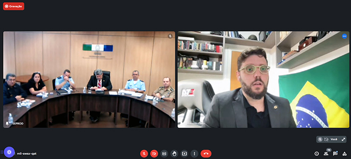O Secretário de Produtos de Defesa fez sua apresentação a partir do MD, em Brasília, ao lado de parte de sua equipe: Brigadeiro Antonio Ferreira de Lima Júnior, Diretor do Departamento de Promoção Comercial; Brigadeiro Alex Orçay Reis, Diretor do Departamento de Financiamentos e Economia de Defesa; Coronel Rafael Aquino dos Santos, coordenador do Departamento de Ciência, Tecnologia e Inovação, representando o diretor, General Carlos Eduardo da Mota Góes; Capitão de Mar e Guerra Leonardo José Trindade de Gusmão, Coordenador-geral do Departamento de Produtos de Defesa, e da Gerente do Gabinete da Seprod e Assessora Especial para o Comércio Exterior, Juliana Ribeiro Larenas.