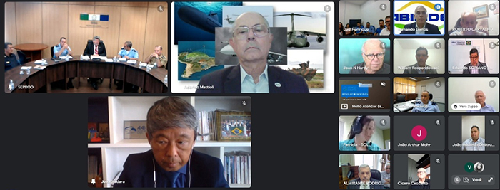 A reunião, em formato online, contou com a participação de cerca de 100 associadas e convidados. A plenária foi aberta pelo Presidente do Conselho Diretor da ABIMDE, Dr. Roberto Gallo, que cumprimentou todos os participantes na pessoa do Almirante de Esquadra Marcos Sampaio Olsen, Comandante da Marinha do Brasil, representado pelo Alte Muradas, passando a palavra ao Brigadeiro Mesquita.