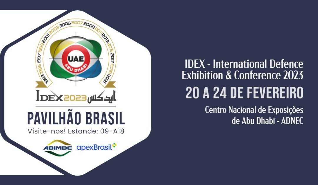 A ABIMDE (Associação Brasileira das Indústrias de Materiais de Defesa e Segurança) apresenta as tecnologias e capacidades da Base Industrial de Defesa e Segurança do Brasil na IDEX 2023 (International Defence Exhibition & Conference), que começa nesta segunda-feira (20) e segue até sexta-feira (24), em Abu Dhabi, nos Emirados Árabes Unidos.