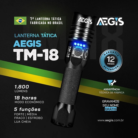 A AEGIS Lanternas Táticas é a única indústria brasileira especializada no desenvolvimento e fabricação de lanternas táticas e equipamentos táticos de iluminação. Foi a primeira empresa a desenvolver e fabricar lanterna tática no Brasil. O portfólio da Aegis conta com lanternas táticas, lanternas para armamentos, lanternas para cabeça, faróis de bikes, lanternas profissionais, acessórios para lanternas e baterias