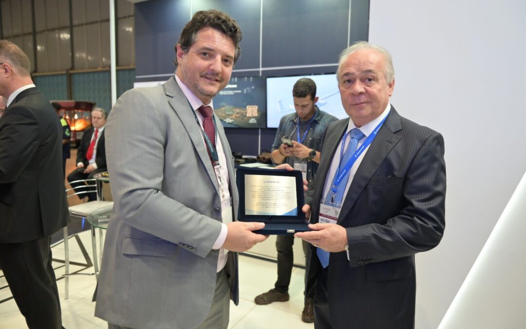 O Diretor-Presidente da EMGEPRON, Vice-Almirante Edesio Teixeira Lima Junior, foi homenageado pela Safran Eletrônica e Defesa Brasil pelo trabalho desempenhado.