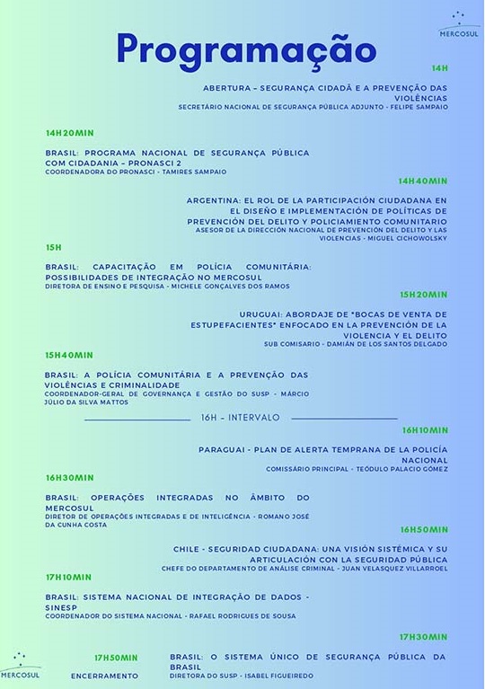 O evento tem como público-alvo profissionais de Segurança Pública e servidores dos Ministérios da Justiça e da Segurança Pública dos Estados-parte e Associados do Mercosul.