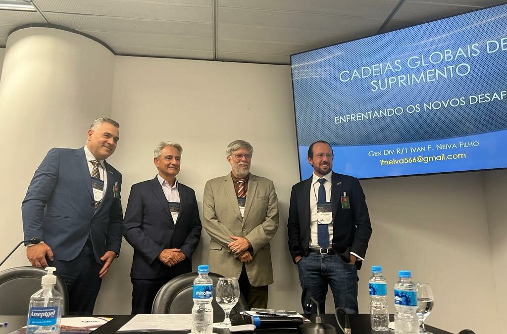 Em sua explanação, o general Neiva falou sobre os novos desafios enfrentados pelas cadeias globais de suprimento, com dois focos: a construção da resiliência nessas cadeias; e as atuais crises geopolíticas que as afetam.