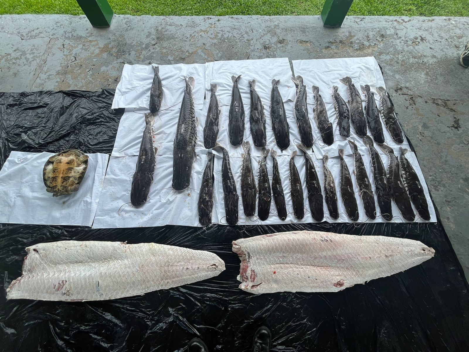 Ao todo, foram apreendidos quase 200 quilos de peixe e, aproximadamente, 400 quilos de caça, além de tartarugas e cágados.
