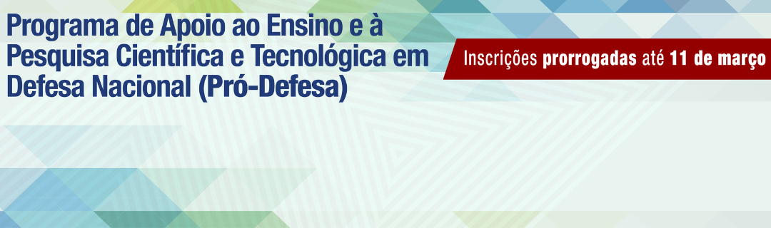 O Ministério da Defesa, por intermédio do Programa de Apoio ao Ensino e à Pesquisa Científica e Tecnológica em Defesa Nacional (Pró-Defesa), promove capacitação profissional de alto nível na área de Defesa. As inscrições para o Edital nº 36/2023 foram prorrogadas até o dia 11 de março e devem ser feitas pelo Sistema de Inscrições da Coordenação de Aperfeiçoamento de Pessoal de Nível Superior (Sicapes).