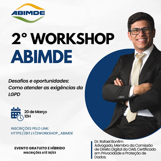 Amanhã, dia 20 de março, é dia de workshop na ABIMDE, com o tema: “Desafios e Oportunidades: Como Atender as Exigências da Lei Geral de Proteção de Dados Pessoais (LGPD)”.