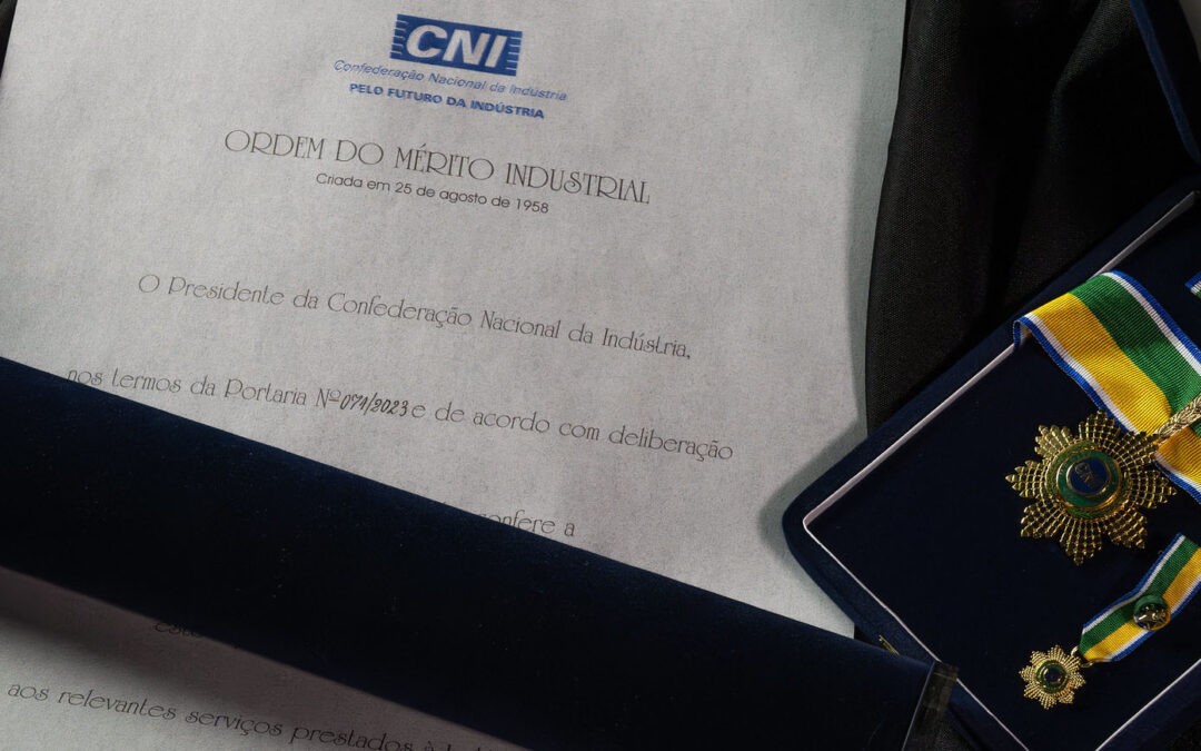 O documento foi entregue ao vice-presidente da República e ministro de Desenvolvimento, Indústria, Comércio e Serviços (MDIC), Geraldo Alckimin, presidente do Tribunal de Contas da União (TCU), ministro Bruno Dantas, e o presidente do Banco Nacional do Desenvolvimento Econômico e Social (BNDES), Aloizio Mercadante, durante a cerimônia de entrega da medalha da Ordem do Mérito Industrial, na terça-feira, 28 de maio, na sede da CNI, em Brasília. Criada em 1958, a medalha é a mais importante condecoração da CNI, concedida a personalidades e instituições que contribuem significativamente para o desenvolvimento da indústria e do país.
